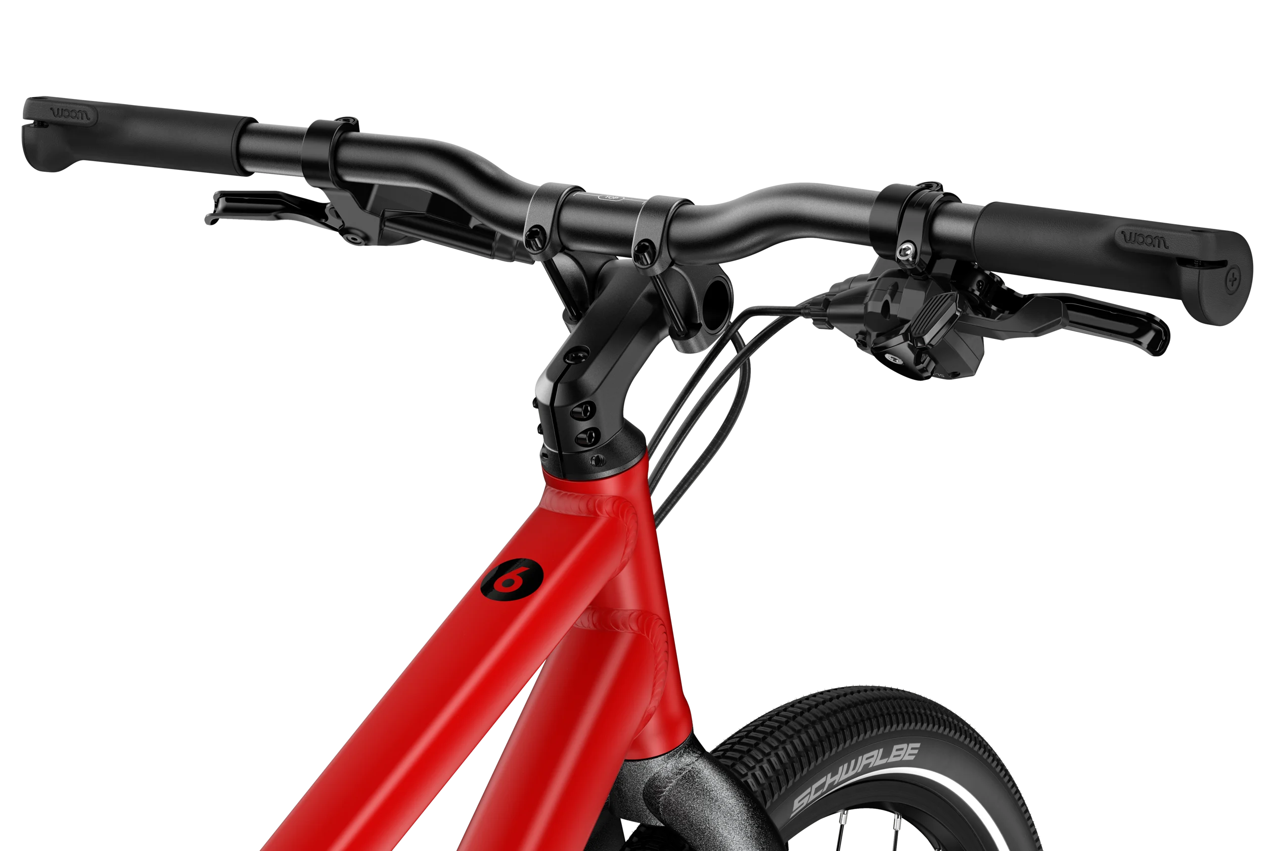 Woom EXPLORE 6 -mallissa on kaupunkipyörien tyyliin suunniteltu pystyasentoinen, 140-165 cm kokoiselle ajajalle optimoitu geometria.